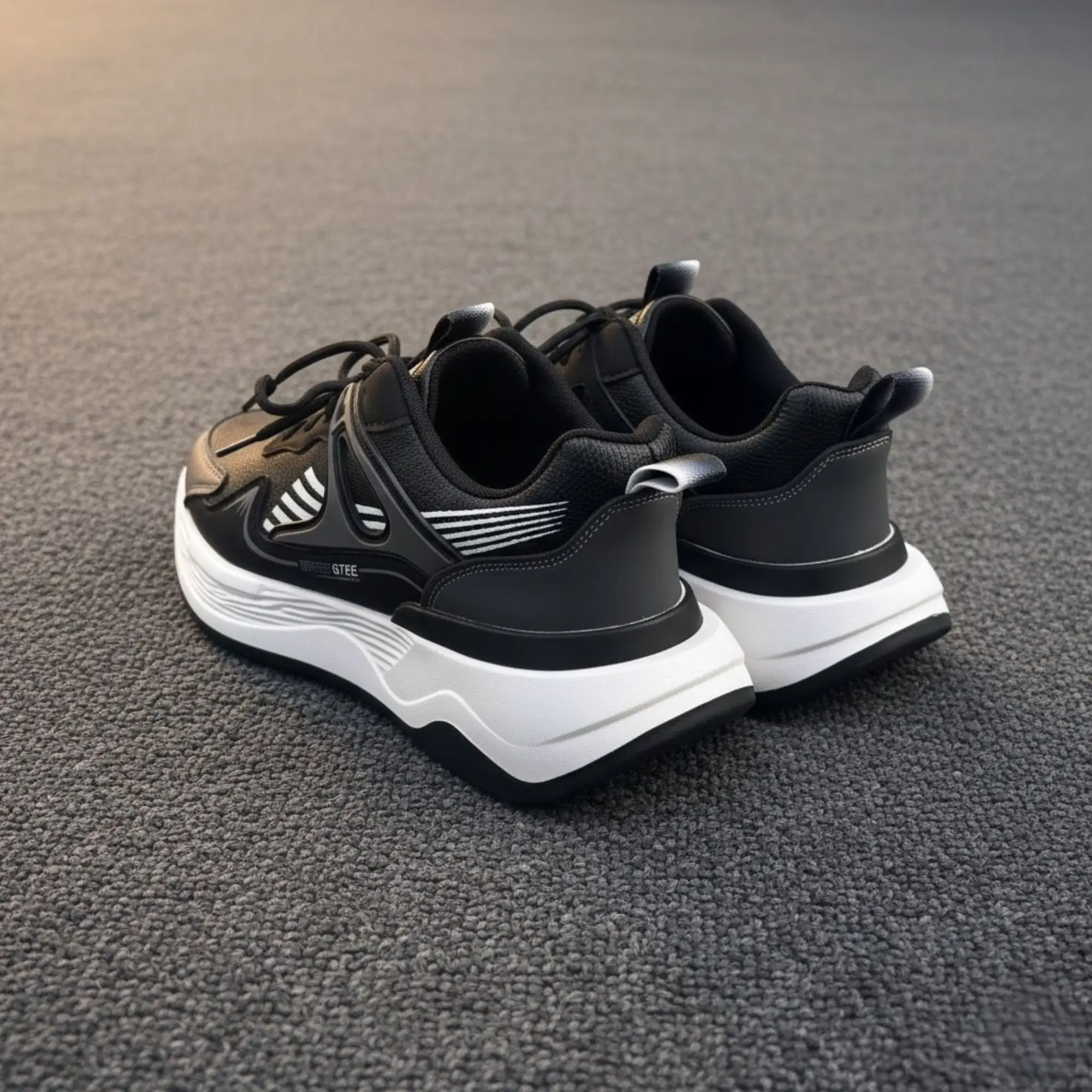 - Bold Contrast Design: The deep black upper is accented by striking white detailing and a thick, chunky white sole, creating a high-contrast look that is instantly stylish.